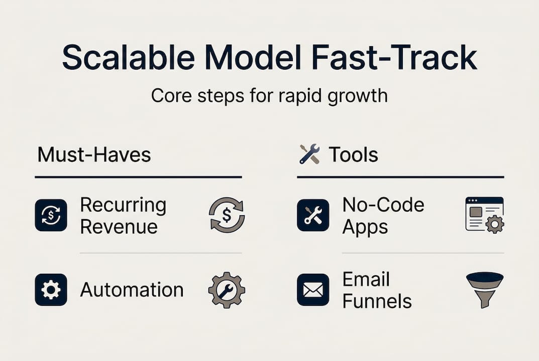 According to Capital One's business resources, key mechanics include fixed costs over variable, automation of processes, recurring revenue such as SaaS subscriptions, and leveraging platforms and no-code tools for low-skill deployment. Each of these deserves attention.